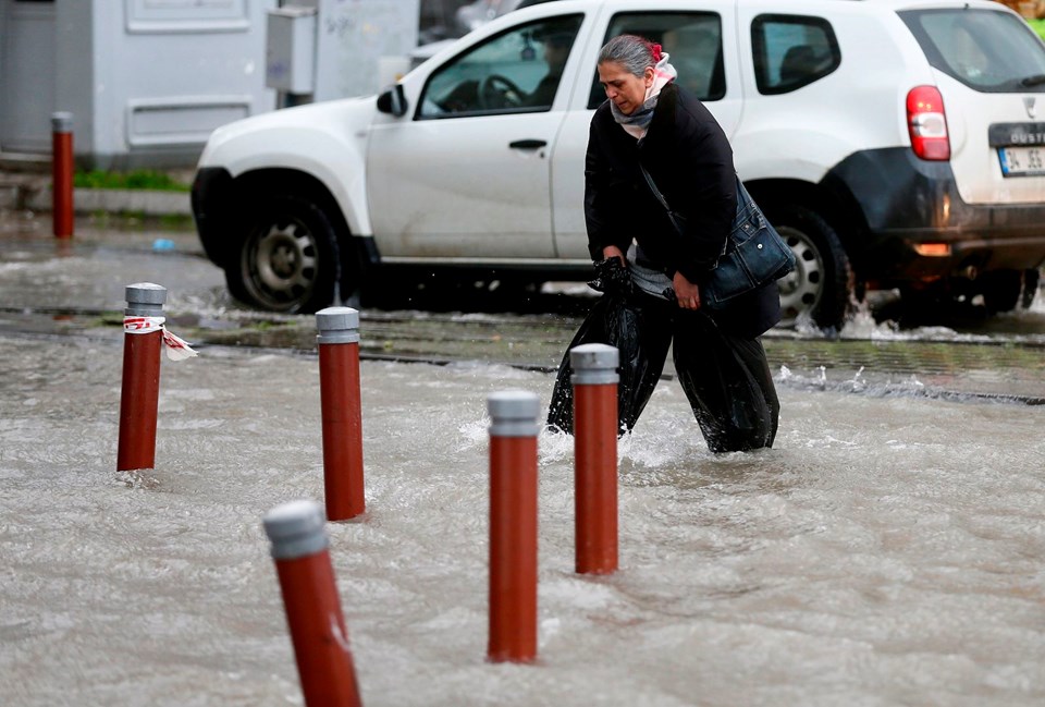 Шторм превратил площадь Гюндогду и близлежащие улицы в районе Асланджак в настоящее озеро, что затрудняло движение транспорта и людей.