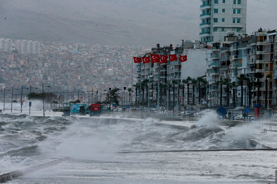 Ветер, скорость которого достигала в утренние часы четверга 73 км/ч, обрушивал 3-метровые волны на побережье западного турецкого города Измир.