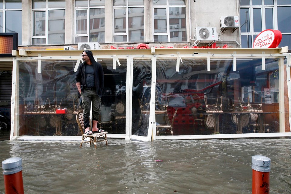 Многие прибрежные кафе и магазины не работают, а сотрудники перестали бороться с уборкой воды и просто ожидают, когда уровень моря спадет.