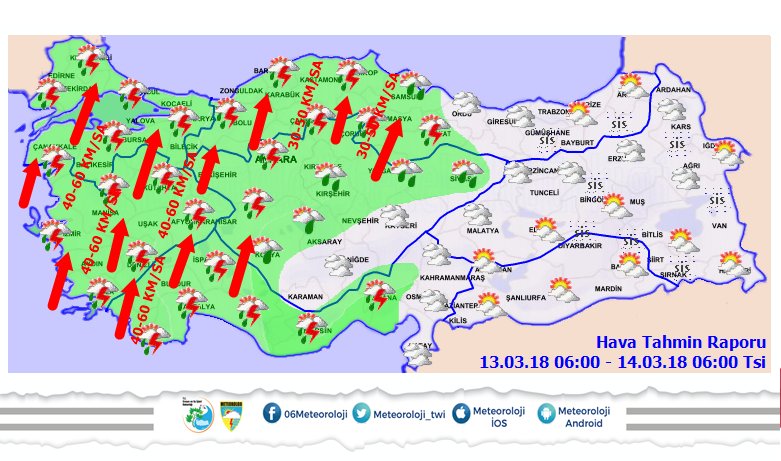 Начиная с утра вторника вся западная часть Турции будет под влиянием южного циклона, который принесет помимо ливней ветер скоростью до 60 км/ч.