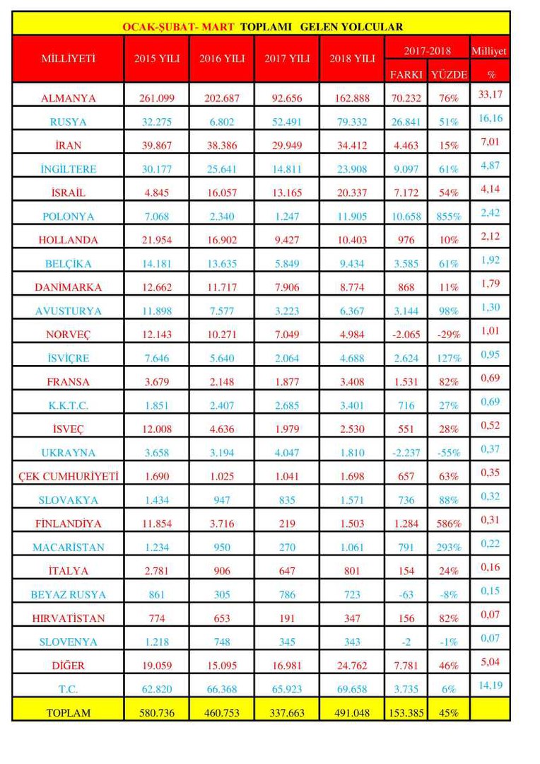 Ссылаясь на данные Управления аэропорта Анталии, которое опубликовало статистику прибытия международных пассажиров за март, губернатор сообщил о увеличении количества туристов на 73% по сравнению с прошлым годом.