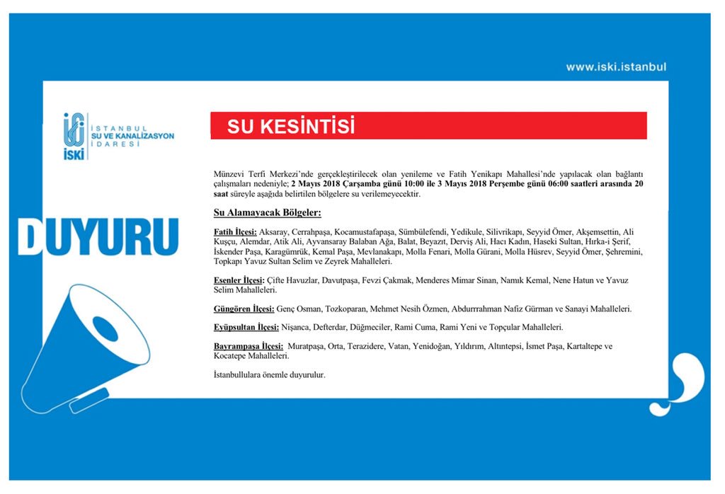 Управление водоснабжения и канализации Стамбула (İSKİ) опубликовало сообщение о начале ремонтно-профилактических работ на одной из водных магистралей города.