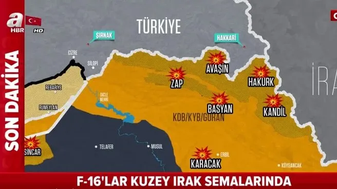 В рамках продолжающейся операции турецкая операция наносит удары по объектам Рабочей партии Курдистана (РКК) в районах Синджар, Караджак, Кандиль, Зап, Авашин-Басъян и Хакурк в Ираке.