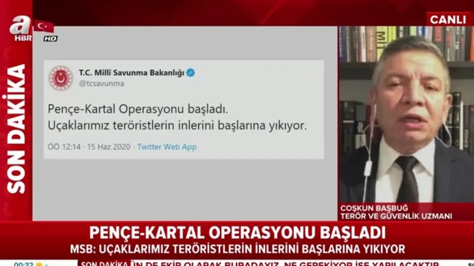 Министр национальной обороны Турции Хулуси Акар ночью прибыл в Командный центр ВС Турции с целью руководства и координации антитерроритической операции Pençe-Kartal на севере Ирака.