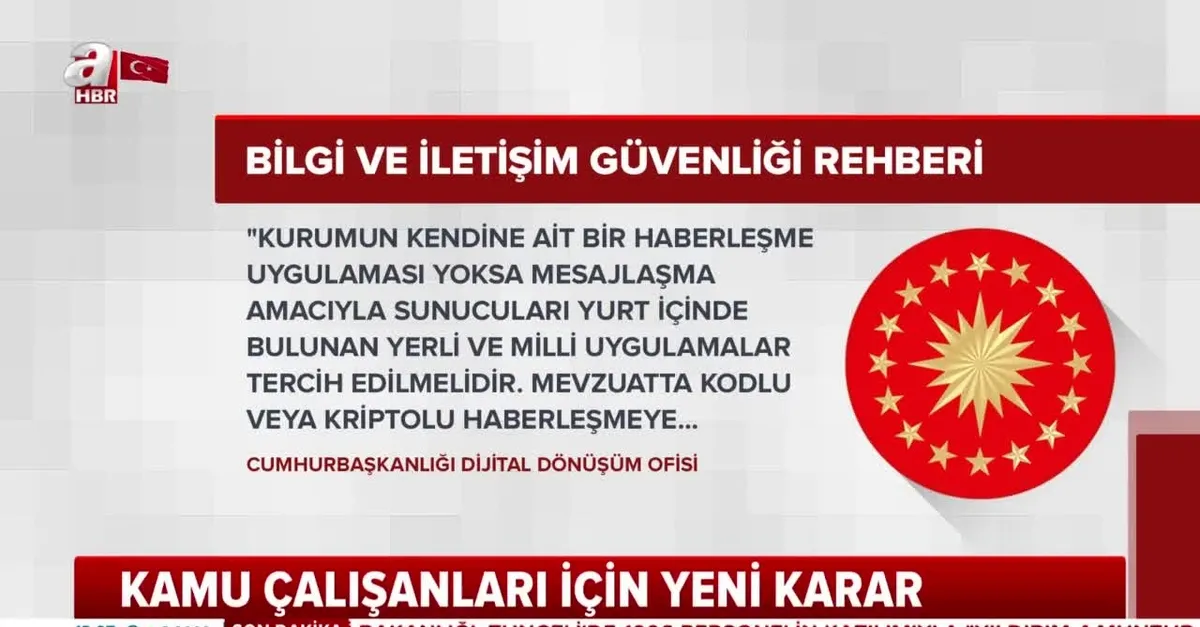 Управлением по цифровым преобразованиям при Администрации президента Турции было выпущено Руководство по информационной и коммуникационной безопасности, в котором запрещается использование иностранных мессенджеров (Telegram, WhatsApp, Viber и др.) для ведения рабочей переписки госслужащими.