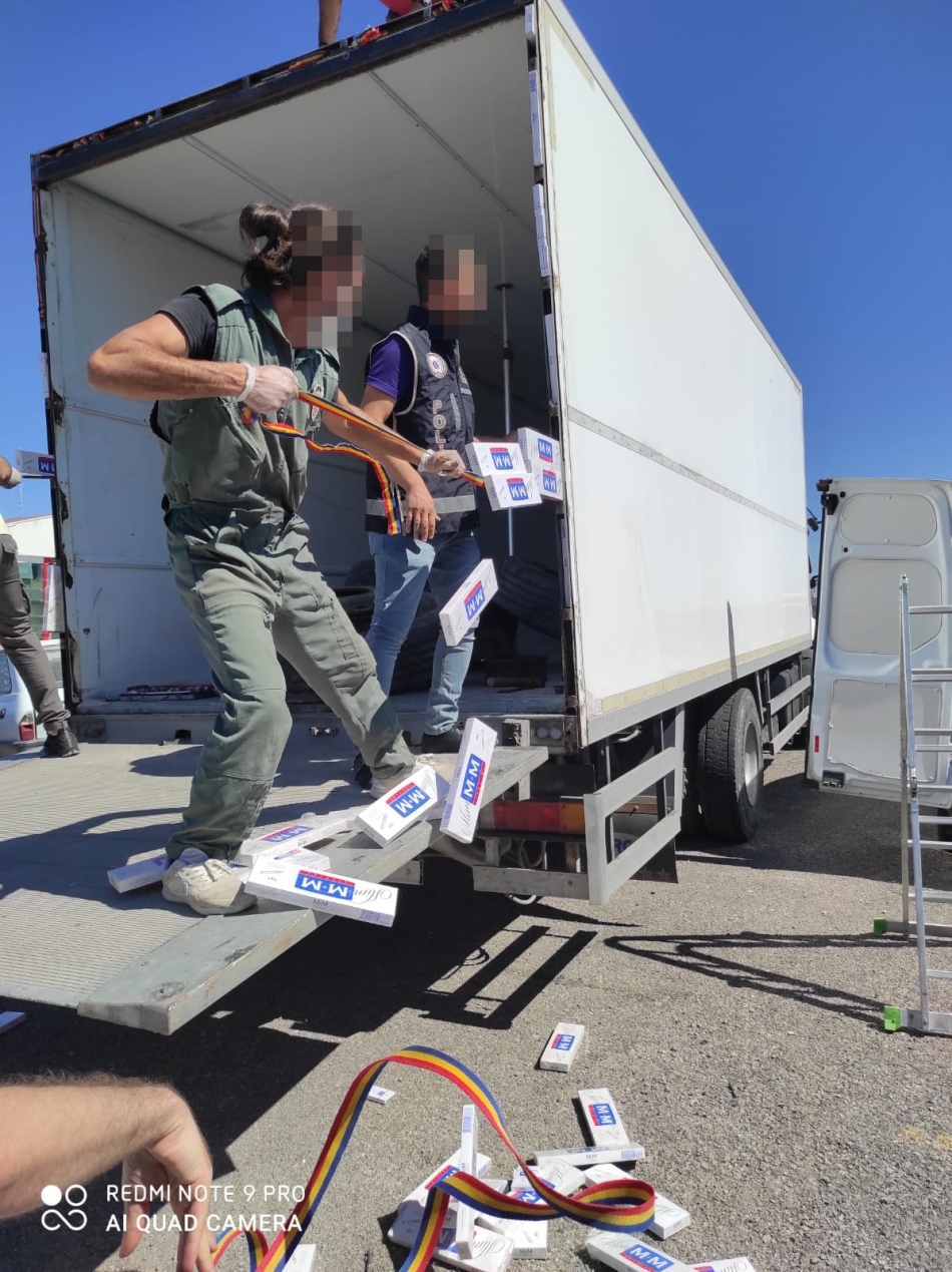 Всего сотрудникам правоохранительных органов удалось извлечь из кузова, кабины и колес грузовика 13 тысяч 800 пачек безакцизных сигарет.