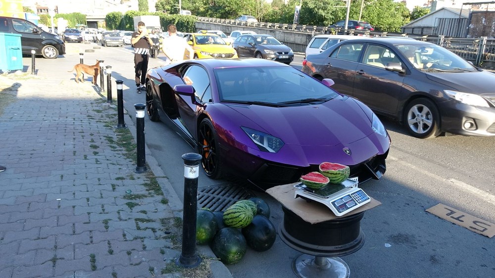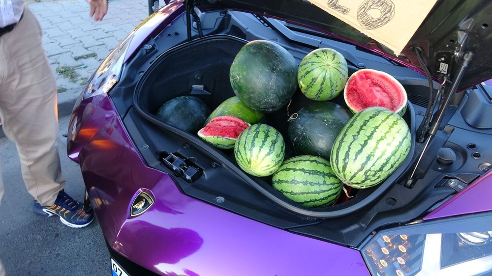 Через несколько минут перед спорткаром образовалась целая очередь за арбузами, которые продавались по 5 лир за килограмм. После появления журналистов мужчины выложили весь товар на обочину и уехали, чтобы не отвечать на вопросы.