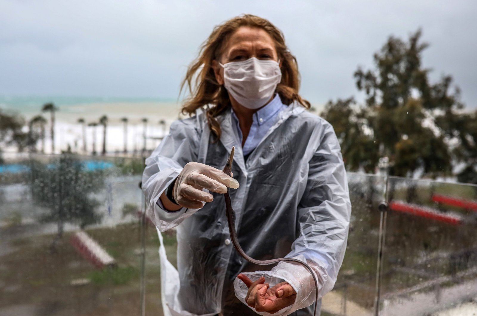 Ветер был такой силы, что смог выбросить небольшую рыбу до балкона жилого дома в районе Коньяалты, который находится в 70 метрах от побережья.