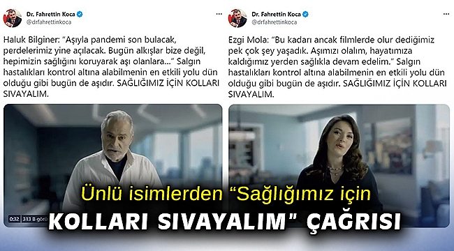 Глава турецкого Минздрава Фахреттин Коджа в своем Твиттере начал ежедневно делиться видероликами с местными звездами эстрады, кино, театров и телеведущими, которые призывают общественность к вакцинации. Среди опубликованных видео можно увидеть певицу Джандан Эрчетин, комика Джема Йылмаза, популярного доктора Мехмета Оза, актеров Шенера Шена и Эзги Мола.