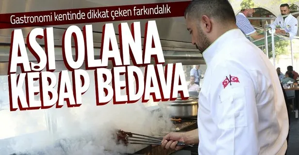 Не отстает и другая популярная гастрономическая локация – Газиантеп. После того, как в городе был зафиксирован рост количества больных, владелец одного из ресторанов Эркан Айык на выходных организовал кампанию по раздаче кебаба вакцинированным жителям и гостям Газиантепа.