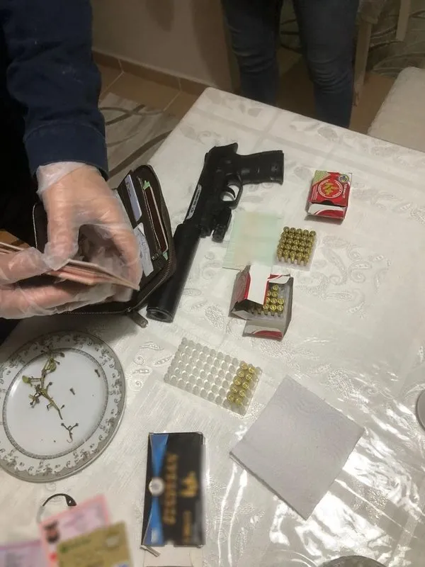 У подозреваемых изъяты три пистолета, один из которых был с глушителем и лазерным целеуказателем, запасные обоймы, патроны к ним и к другому оружию. При этом на оперативном видео у задержанных были найдены разрешения на проживания в Турции (икаметы), загранпаспорта РФ и предметы с гербовыми печатями, что стало поводом обращения российского МИД к турецкой стороне.