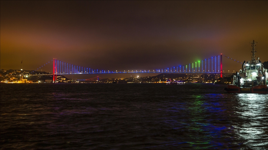 Сразу два подвесных моста через стамбульский пролив Босфор были подсвечены в ночь на 1 мая в цвета футбольного клуба «Трабзонспор», ставшего чемпионом страны впервые за 38 лет.