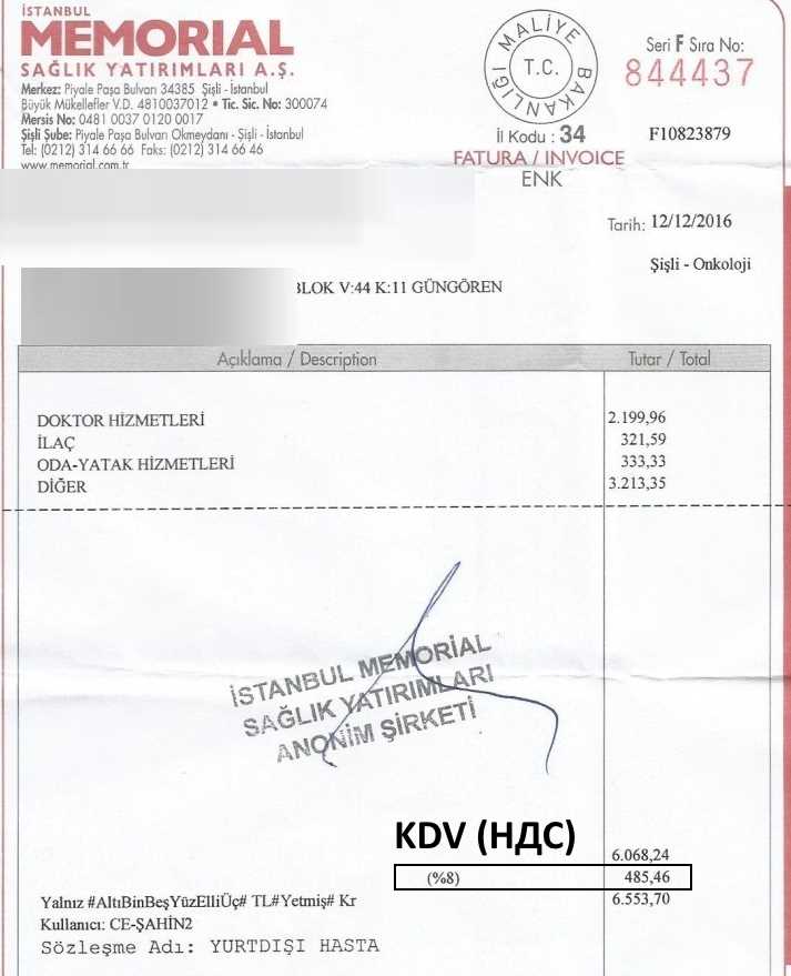 В соответствии с законом, принятым парламентом в конце марта, иностранцы-нерезиденты были освобождены от уплаты НДС в случае прохождения диагностики, лечения и реабилитации в медицинских учреждениях, аккредитованных Министерством здравоохранения Турции.