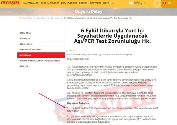 Турецкий авиаперевозчик Pegasus Airlines оказался в центре скандала, просто озвучив решение МВД относительно нововведенного правила требовать с 6 сентября ПЦР-тест при внутренних перелетах.